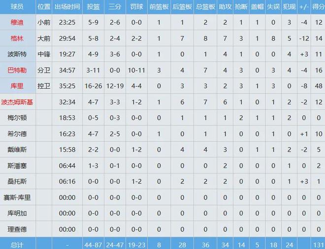 勇士数据如下: